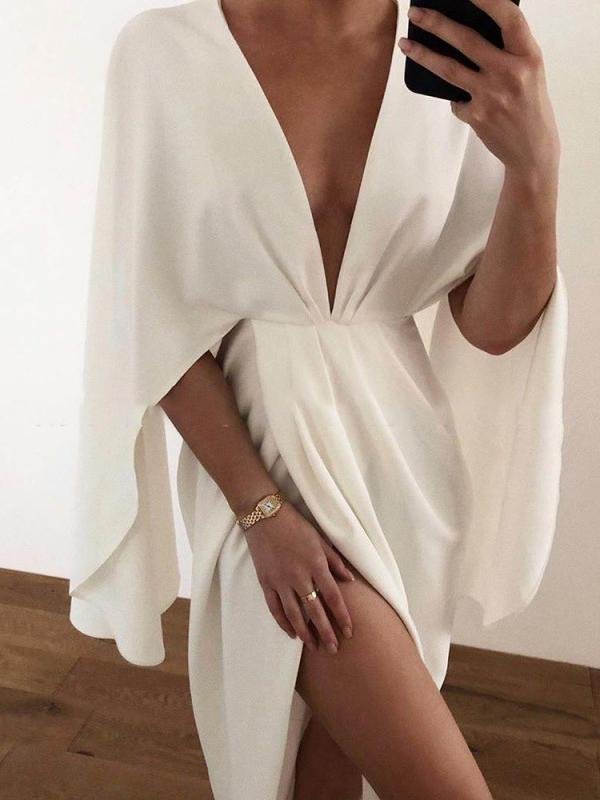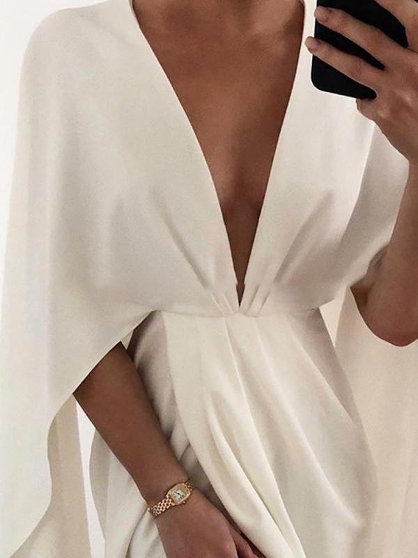 Deep V Cloak Solid Long Sleeve Dress