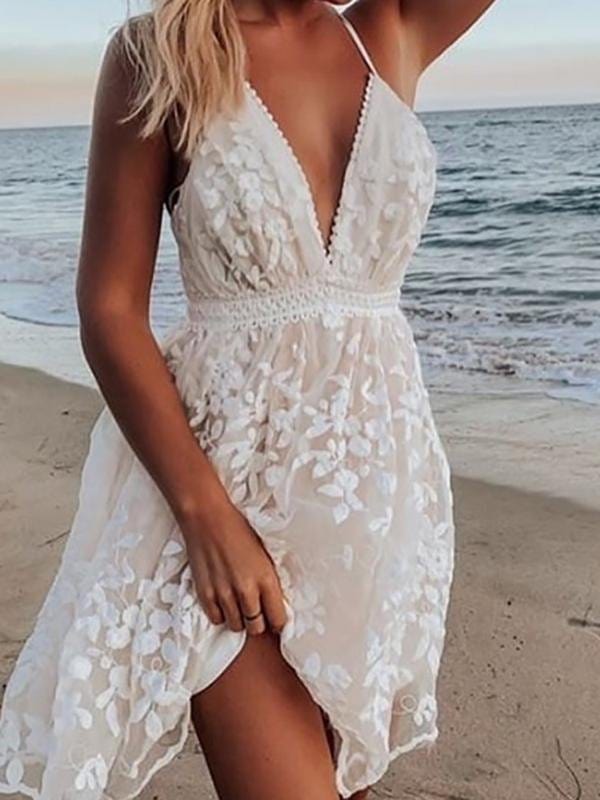 Lace V-neck Open Back Sling Waist Mini Suspender Dress
