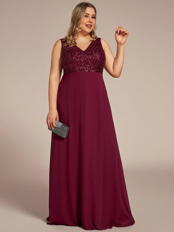 Plus-Sleeveless V-Neck Sequin & Chiffon Evening Dresses