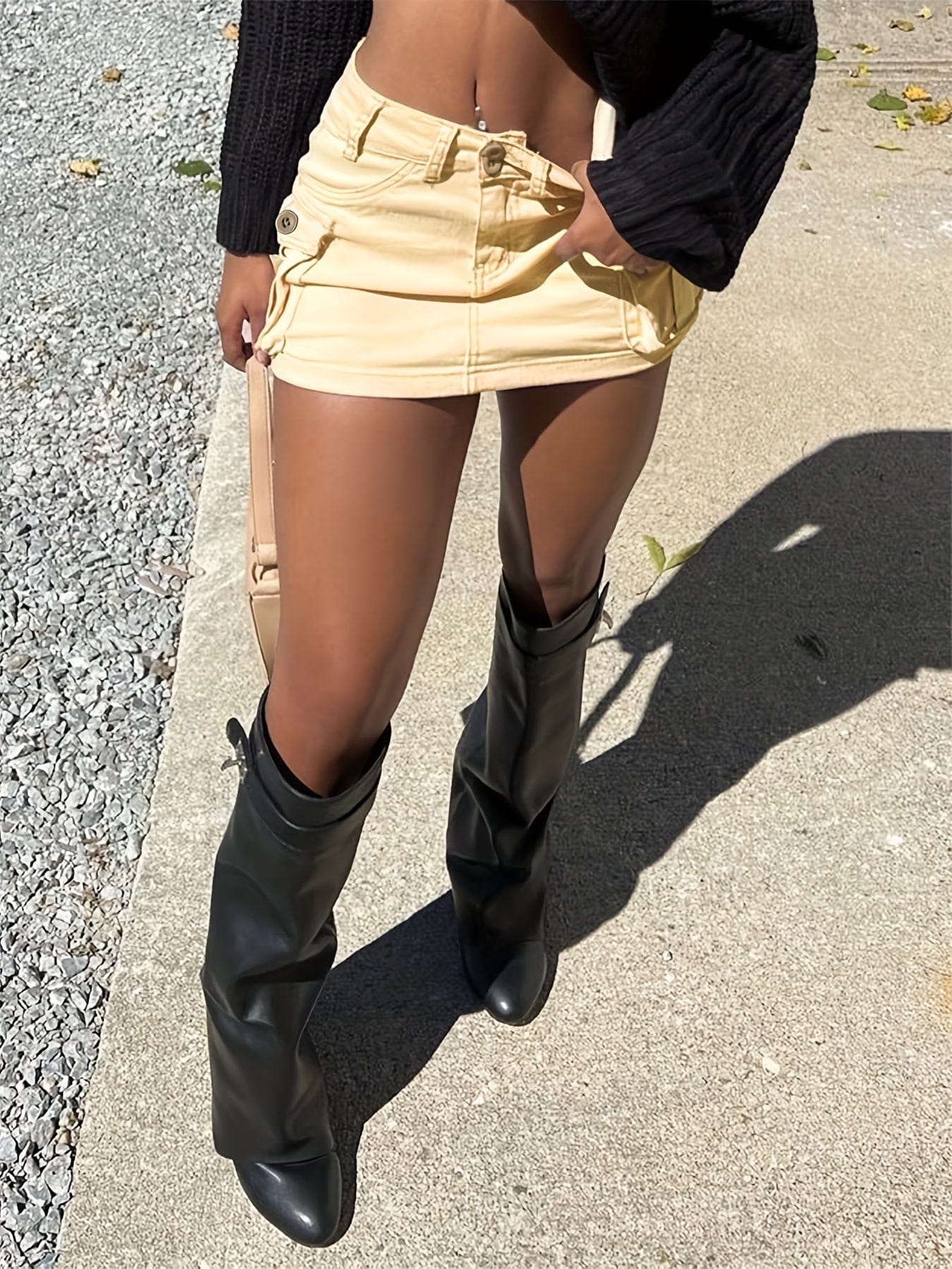 Solid Y2K Style Slim Fit Short Denim Mini Dress